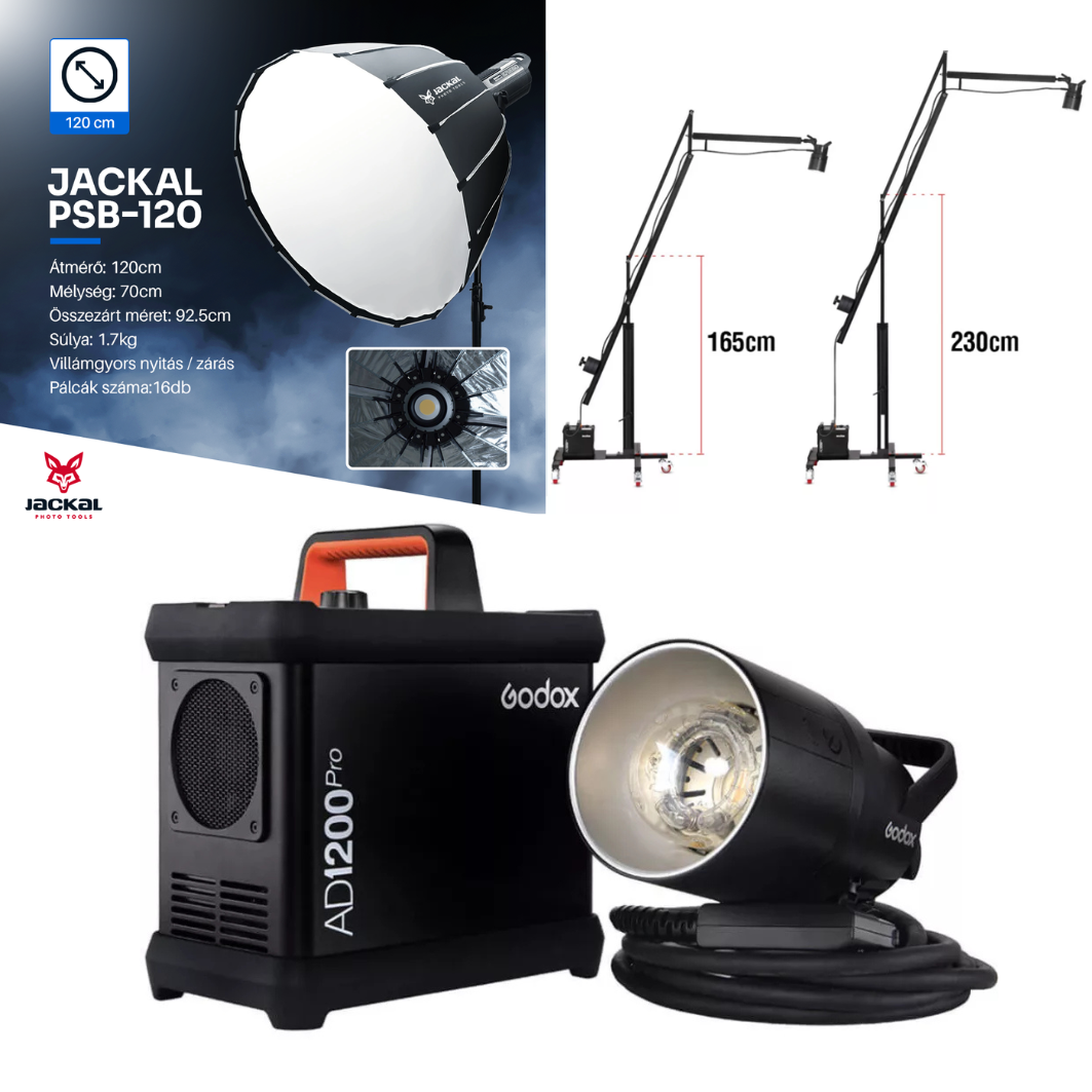 Modern világítástechnika, stabil állványok és kiváló minőségű kiegészítők a zavartalan munkavégzéshez.